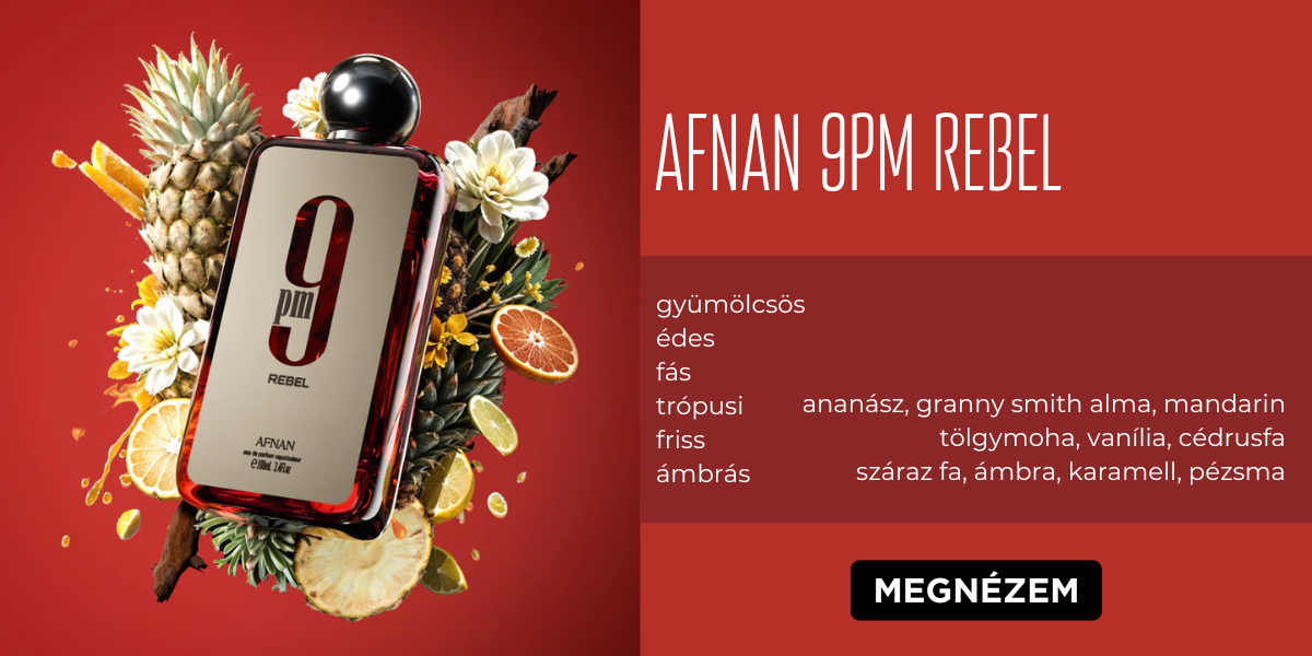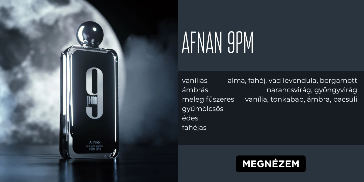 Az egyik legismertebb AFNAN-parfüm, a 9PM fűszeres–vaníliás aromája tökéletes esti viselet. Almás, fahéjas nyitása után meleg vanília és tonkabab zárja le az illatot – magabiztos és tartós.