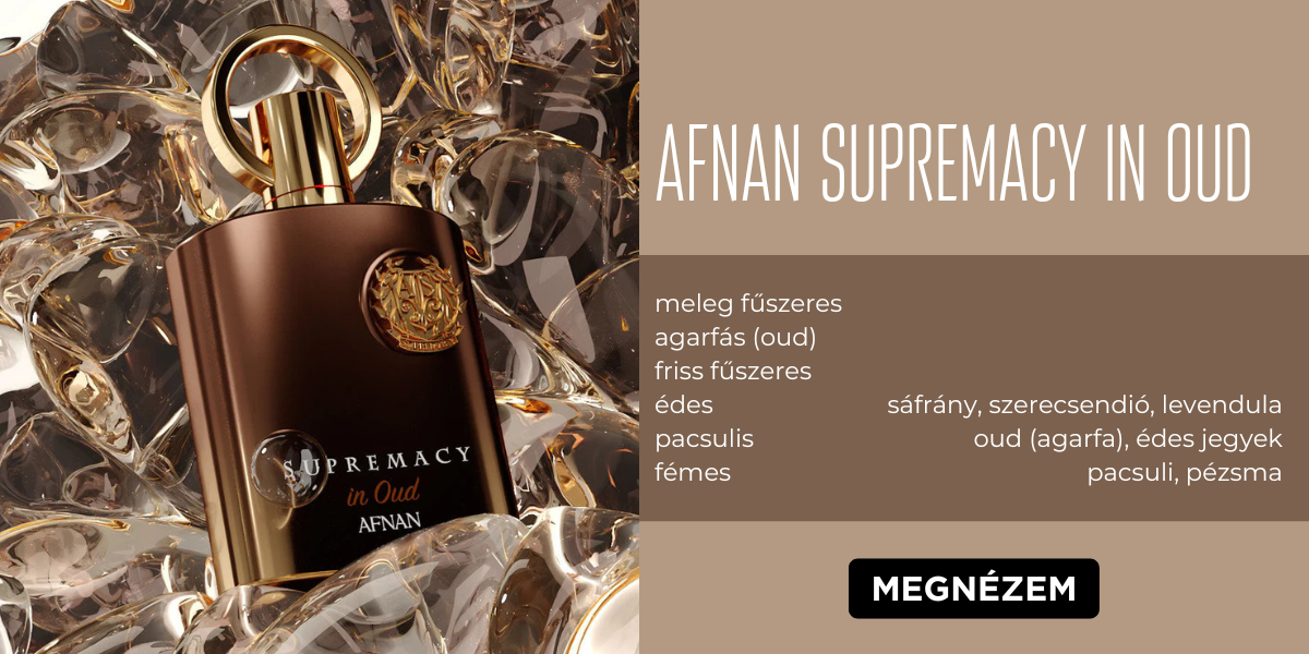 A Supremacy in Oud gazdag, oud-alapú orientális kompozíció: sáfrány, szerecsendió és oud selymes harmóniája, amely elegáns és misztikus jelenlétet ad.
