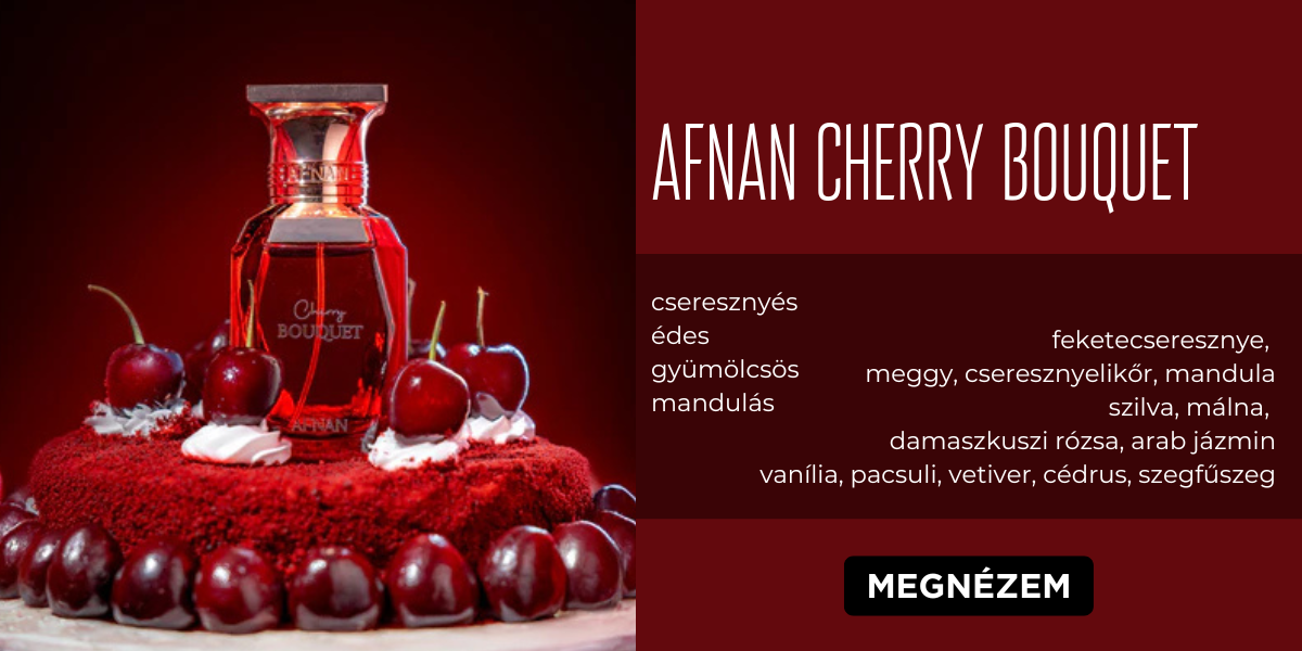 A Cherry Bouquet egy virágos–gyümölcsös gourmand illat: fekete cseresznye, mandula és vanília kombinációja, amely modern nőiességet és csábítást sugároz.