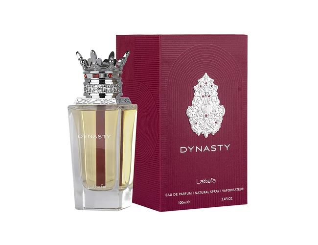 Dynasty by Lattafa Perfumes egy kortárs, fás-fűszeres illat, amelyet Alex Lee parfümőr alkotott. A nyitányban élénk bergamot, pikáns gyömbér, aromás zsálya, édes málna és karakteres szerecsendió bontakozik ki, energikus és vibráló indulást teremtve. A szívben különleges rooibos tea és bársonyos szarvasbőr párosa ad mélységet és puhaságot. Az alapban cédrusfa, cashmeran és amberwood alkotnak meleg, elegáns és hosszan tartó lecsengést.