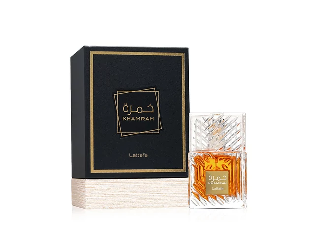 A Lattafa Khamrah (2022) az arab parfüméria modern mesterműve, amely a gazdag fűszerek, a gyümölcsös édesség és a vaníliás–fás alapok varázslatos összhangját nyújtja.