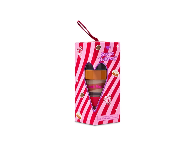 A Revolution Beauty I Heart Revolution Sweet Delivery Lip Balm Trio három ízletes, teljes méretű ajakbalzsamot tartalmaz: Cookies & Cream, Candy Cane és Cinnamon Swirl. Gazdag, hidratáló formulájuk puhává és simává varázsolja az ajkakat, miközben finom illatot hagy maga után. Tökéletes ajándék vagy személyes kényeztetés, vegán és állatkísérlet-mentes.